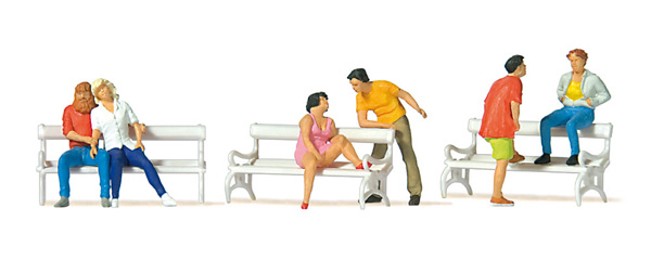 Sur les bancs publics composition de 6 figurines, réparties sur 3 bancs publics.