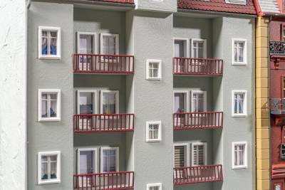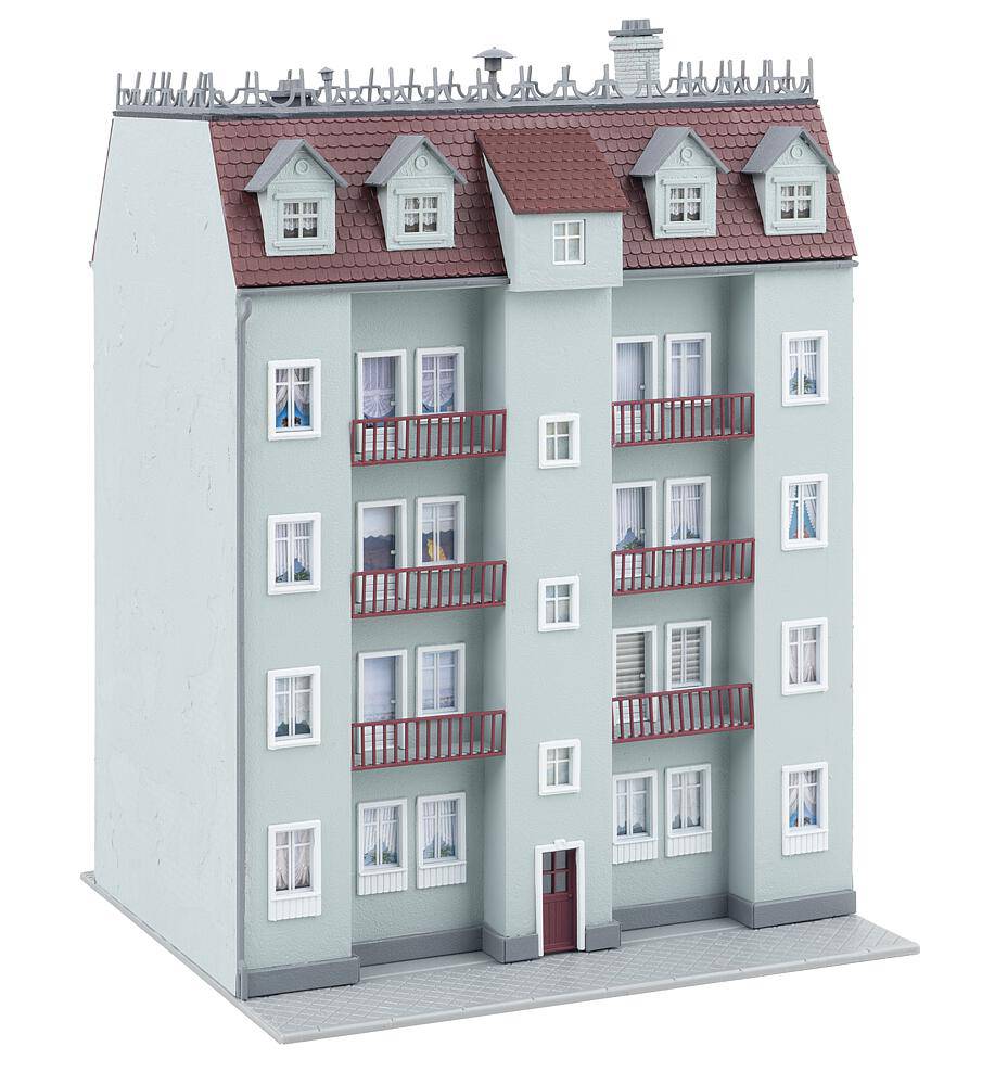 Maison d'habitation pritzwalk Un morceau de l'histoire des séries allemandes en modèle réduit! Inspiré d'un immeuble d'habitation de la série ARD Marienhof, ce modèle réduit apporte le charme de ce quartier fictif de Cologne sur le réseau. Avec sa façade grise, ses six balcons caractéristiques et son toit en tuiles rouge foncé à deux pentes, cet immeuble collectif est un modèle idéal pour représenter des scènes de vie quotidienne et de caractère urbain. Particulièrement remarquable: la partie plate du toit, encadrée par des éléments décoratifs en fer forgé sur le pourtour.