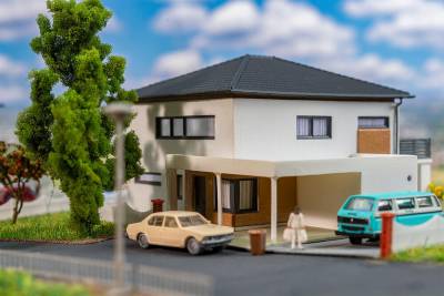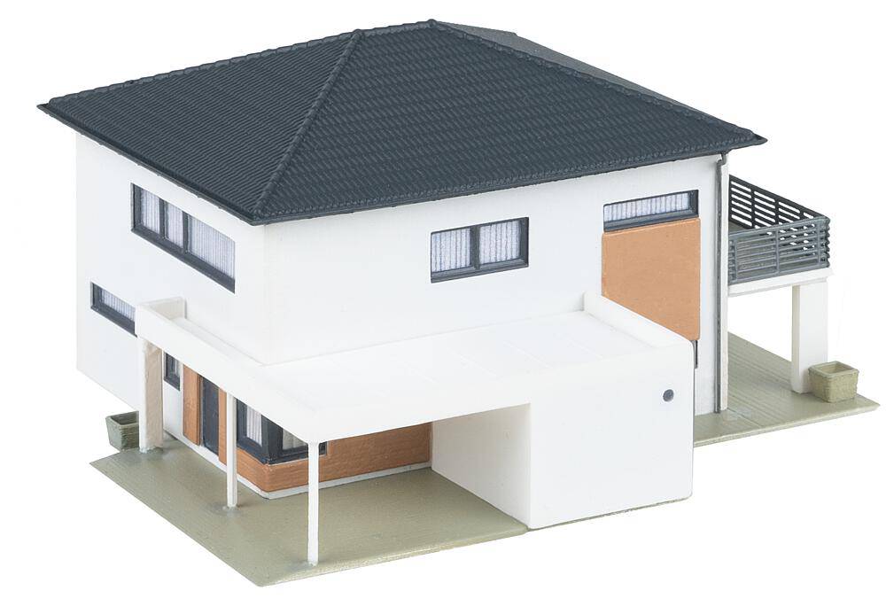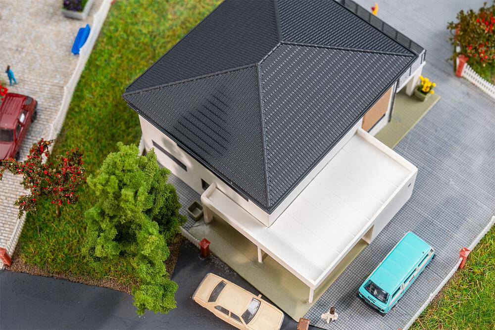 WeberHaus CityLife Vous voulez une vie urbaine moderne ? Cette maquette apporte un vent de fraîcheur dans chaque banlieue et embellit votre diorama avec style. Avec ses murs blancs, son toit en tuiles noires, son balcon spacieux ainsi que ses élégantes décorations en bois et ses grandes fenêtres au rez-de-chaussée, elle attire l’attention des amateurs d’architecture contemporaine.